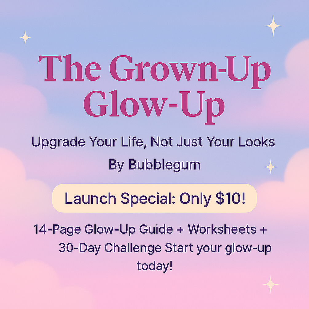 The Grown-Up Glow-Up by Bubblegum is your complete, motivational guide to becoming your best self — not just in looks, but in mindset, habits, health, and purpose.