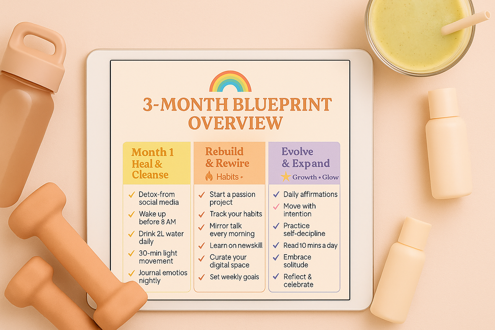 Ready to glow up in every area of your life? This Glow Up Starter Pack is your all-in-one digital guide to help you level up mentally, physically, and aesthetically – with no overwhelm, just small consistent steps.